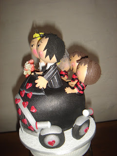 Fiz estes noivinhos como topo de bolo para a Thaís. Ela pediu que colocasse as crianças com camisa do Flamengo para homenagear o papai. Ficou muito lindinho.